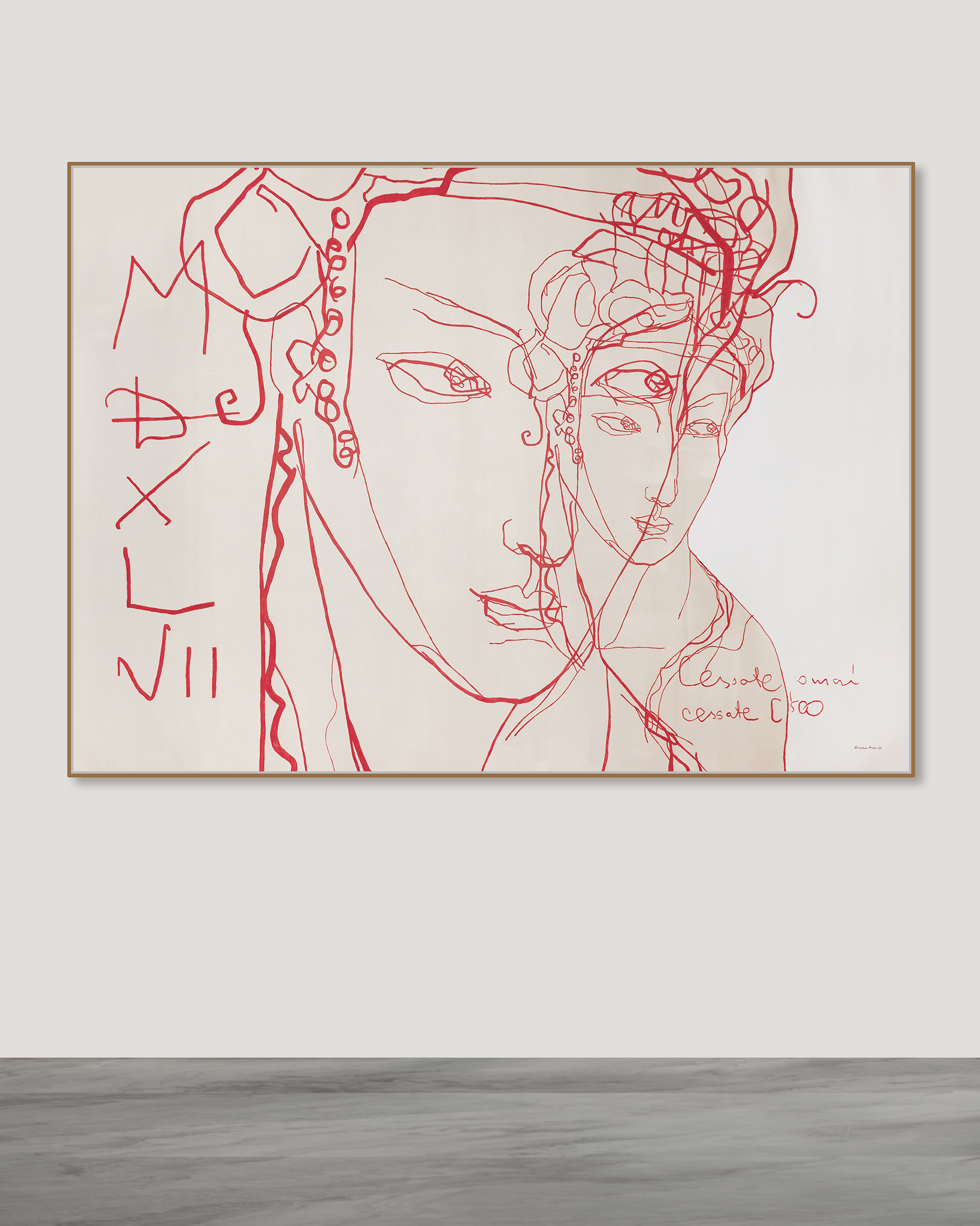 Acrylic on canvas mounted on a wood strainer, framed – H 180 × W 160 cm.