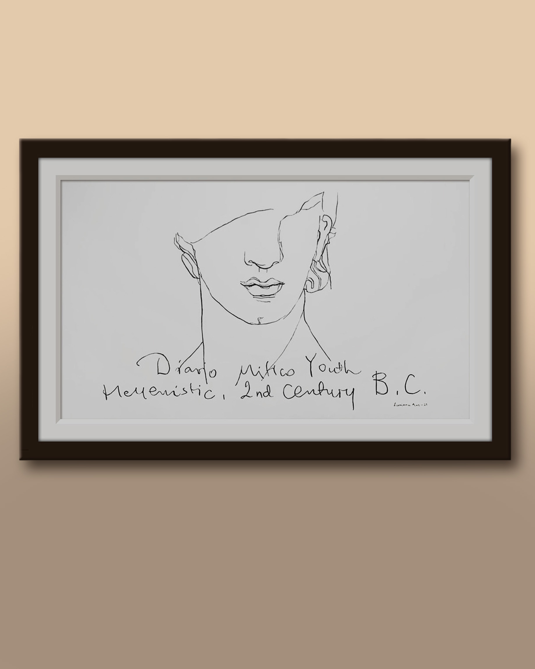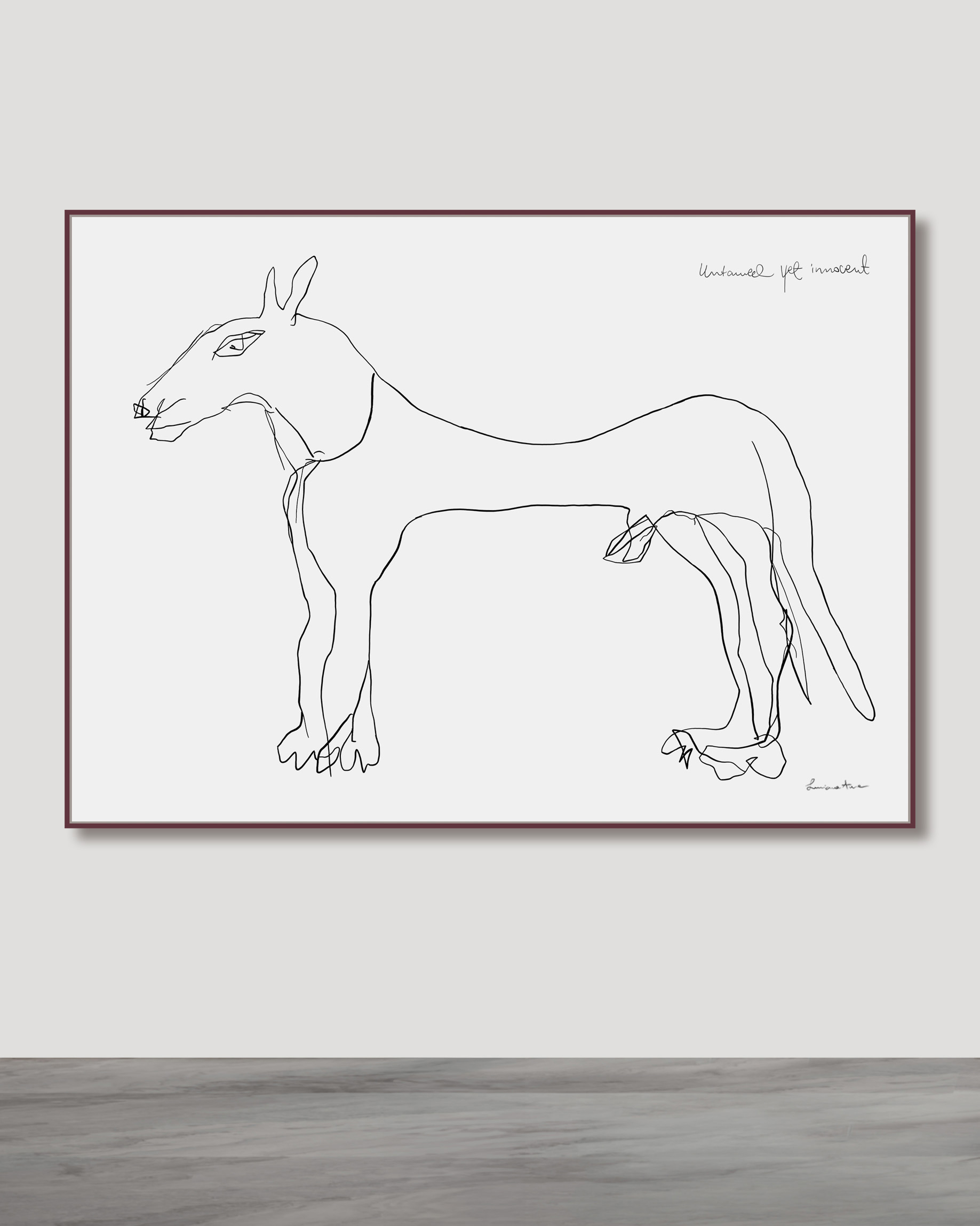 Acrylic on canvas mounted on a strainer, framed.