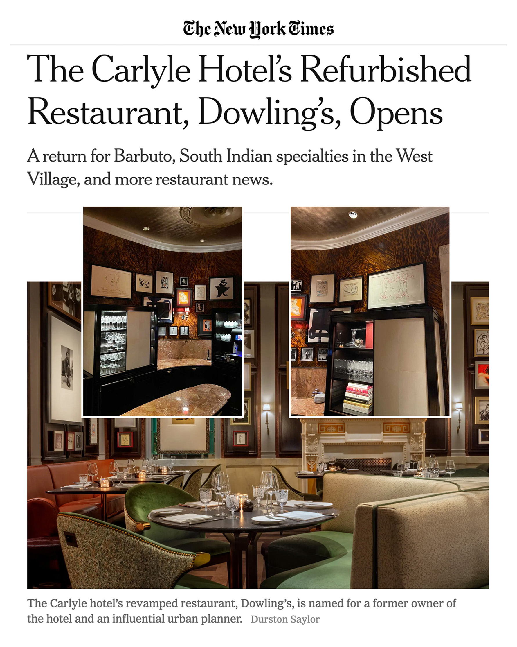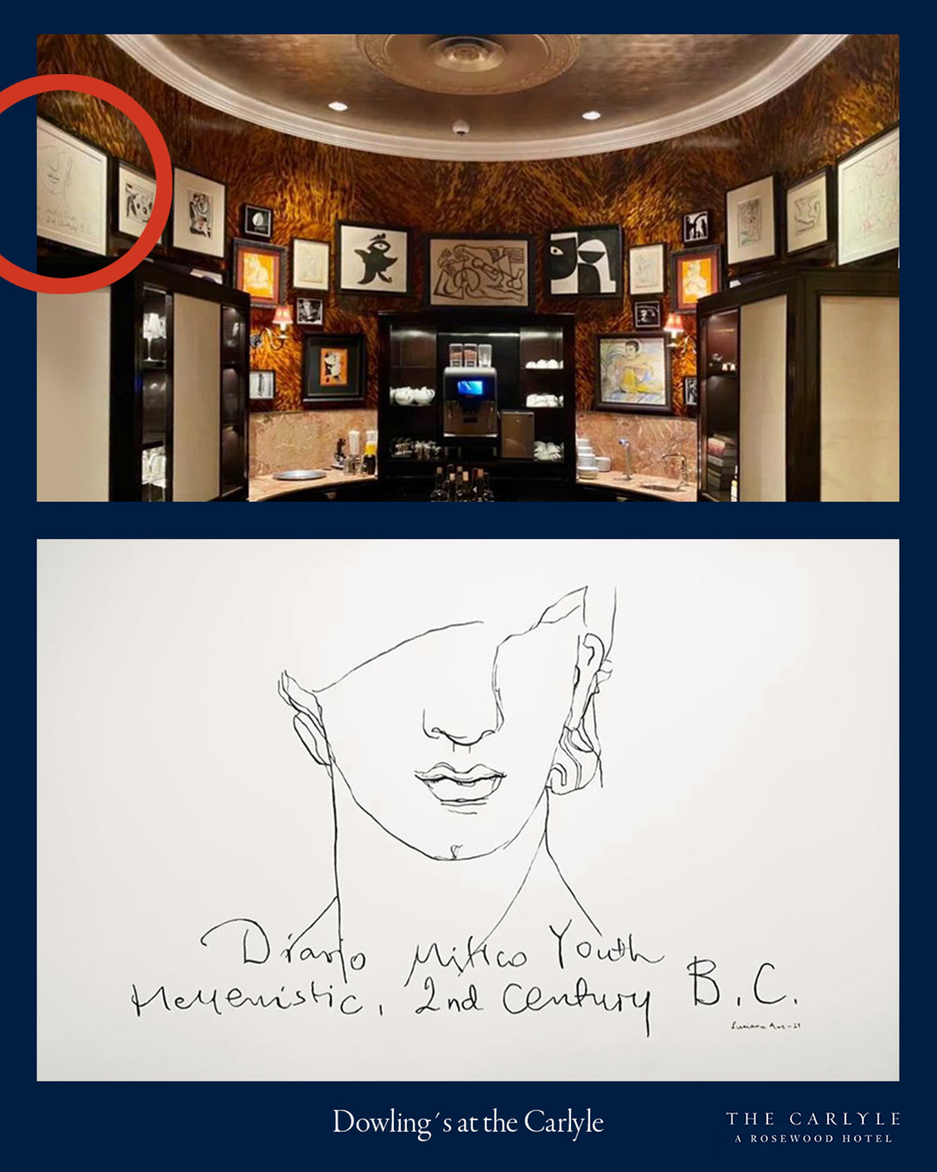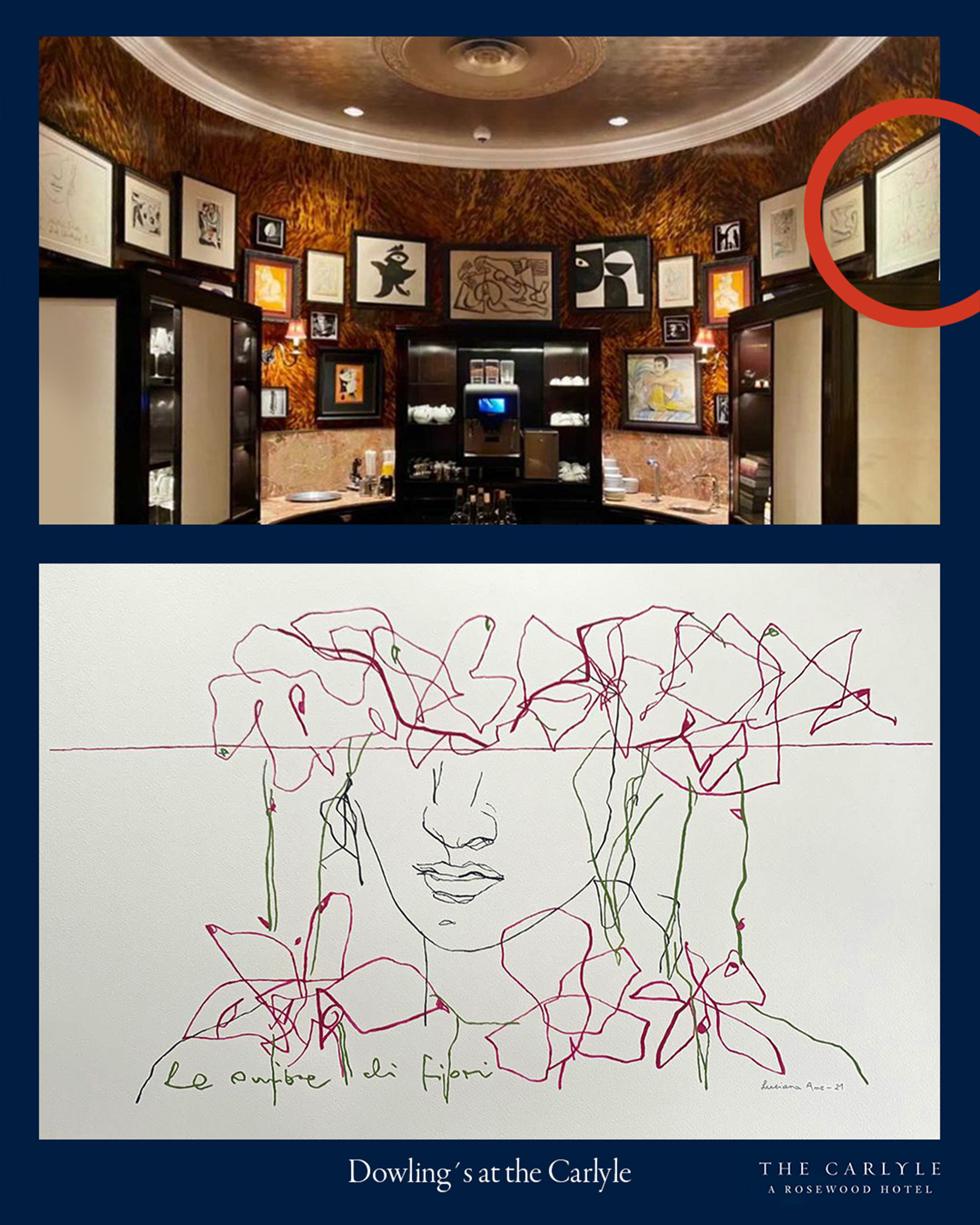 Luciana Ame was selected to be part of the permanent art collection at Dowling’s at The Carlyle hotel in New York, a restaurant opening in 2021, which is adorned with 189 artworks of which 2 are Luciana’s contribution to create an eclectic, eccentric atmosphere. The Dowlings drew inspiration from the hotel’s famous bar, Bemelmans. Fine art meets fine dining, with masterpieces on walls and plates alike.