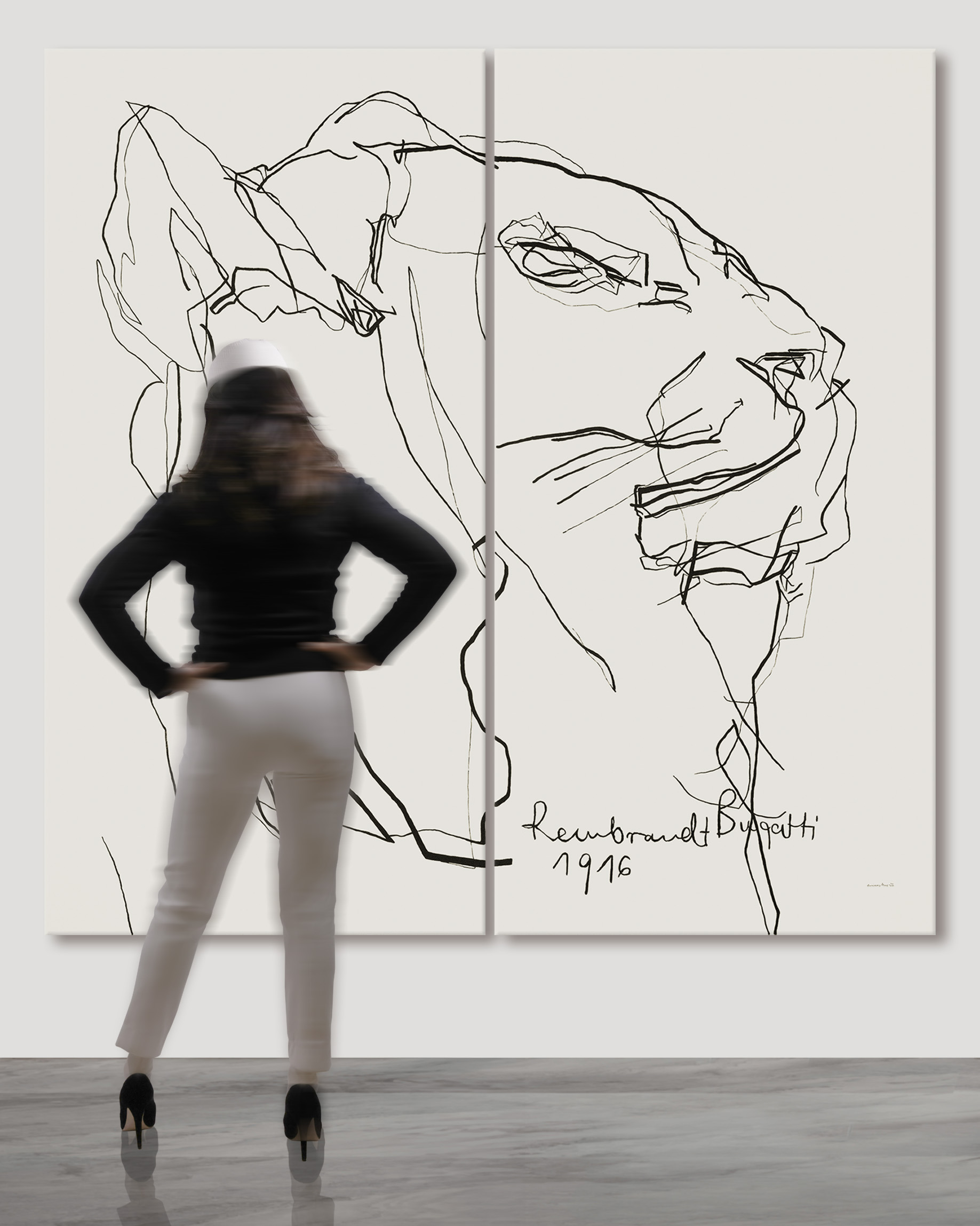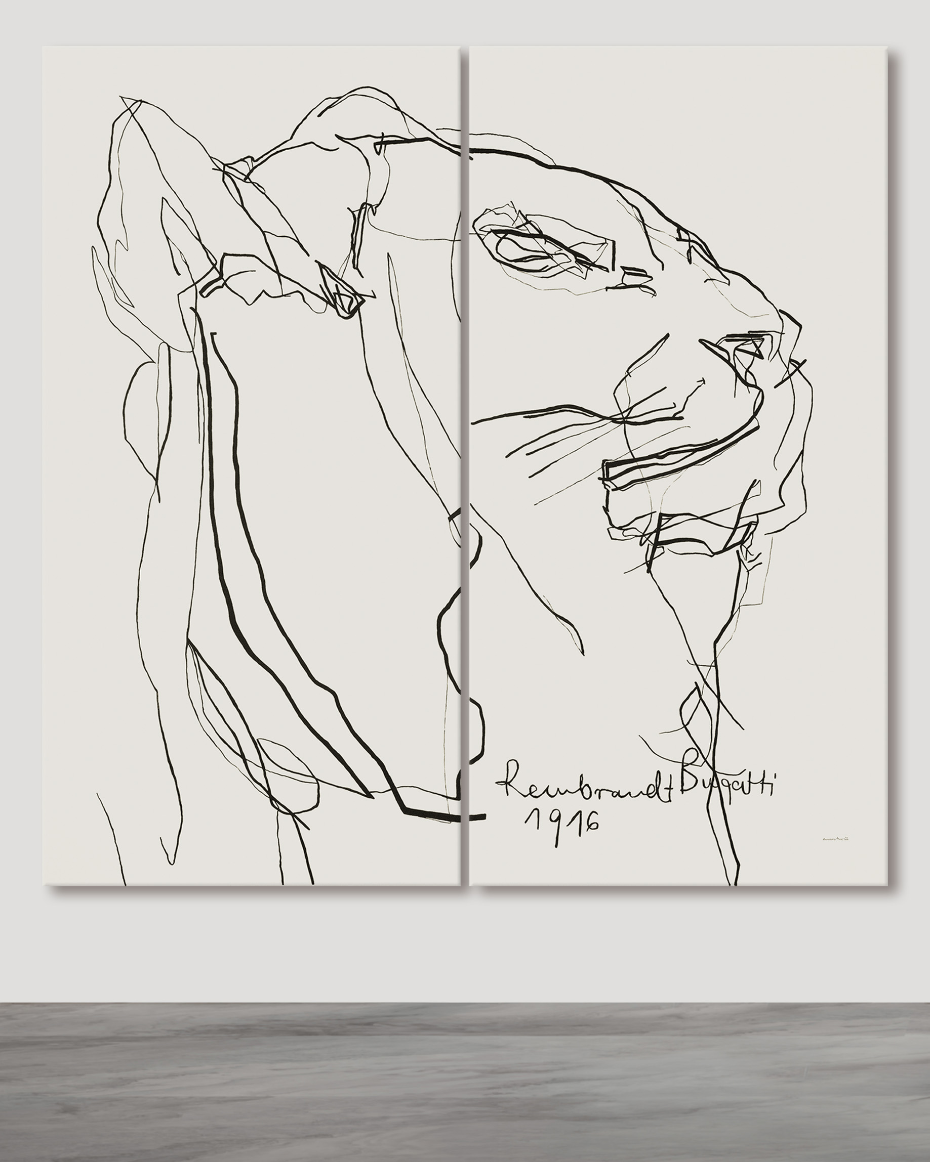 Acrylic on canvas mounted on wood strainer, framed – H 100 × W 200 cm x 2 (diptych).