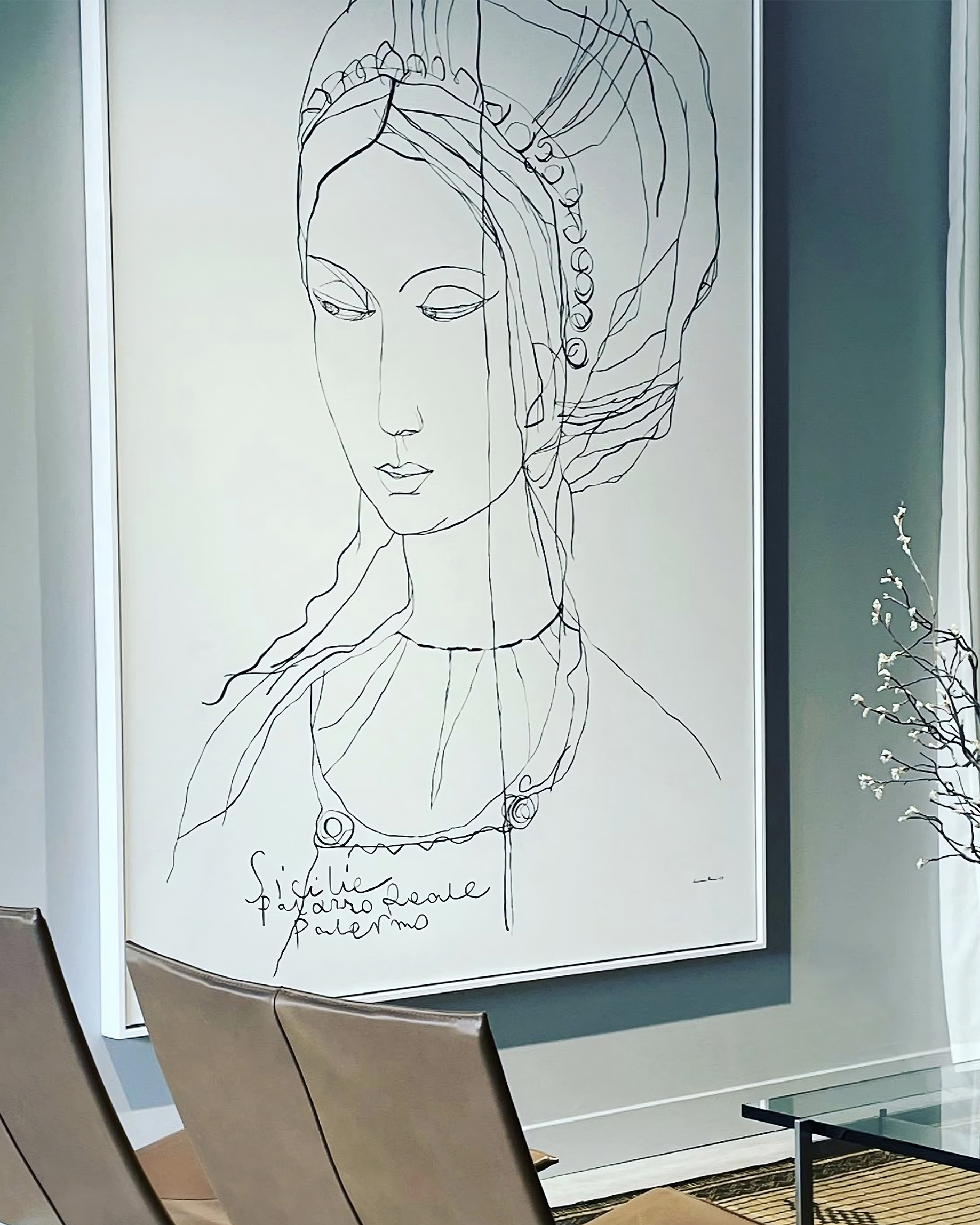 Acrylic on canvas mounted on wood strainer, framed – H 132 × W 189 cm